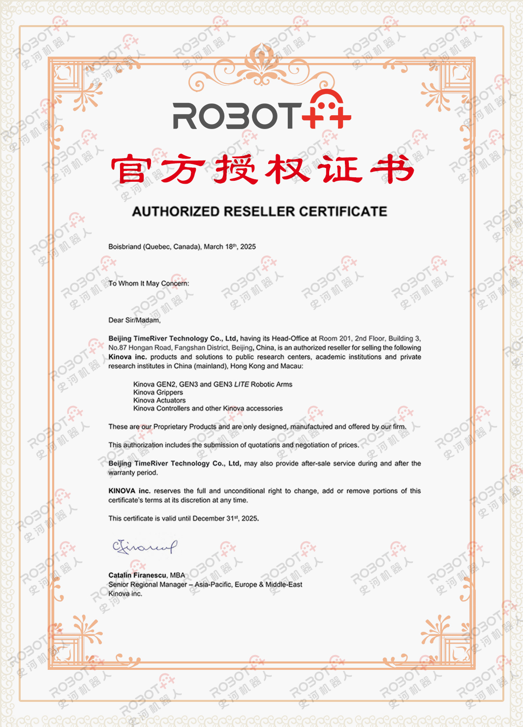 authorized distributor of Kinova